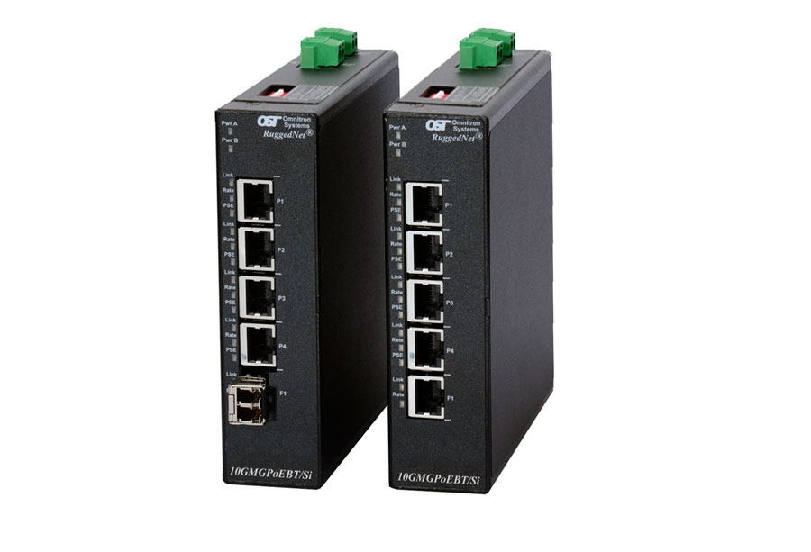 RuggedNet Power over Ethernet Switches are available in unmanaged and layer 2 managed models, supporting 10/100/1000 and 10G Ethernet with options for PoE, PoE+ HPoE 60W and IEEE 802.3bt (60W and 100W).