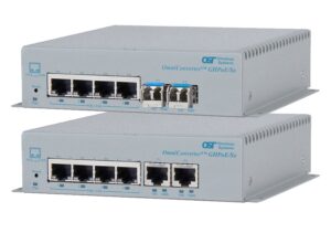 | Description | OmniConverter® GHPoEBT/Sx (60/100W BT) 10/100/1000BASE-T with Gigabit Fiber or Copper Uplinks Unmanaged 6 Port IEEE 802.3bt PoE Ethernet Switch | ||